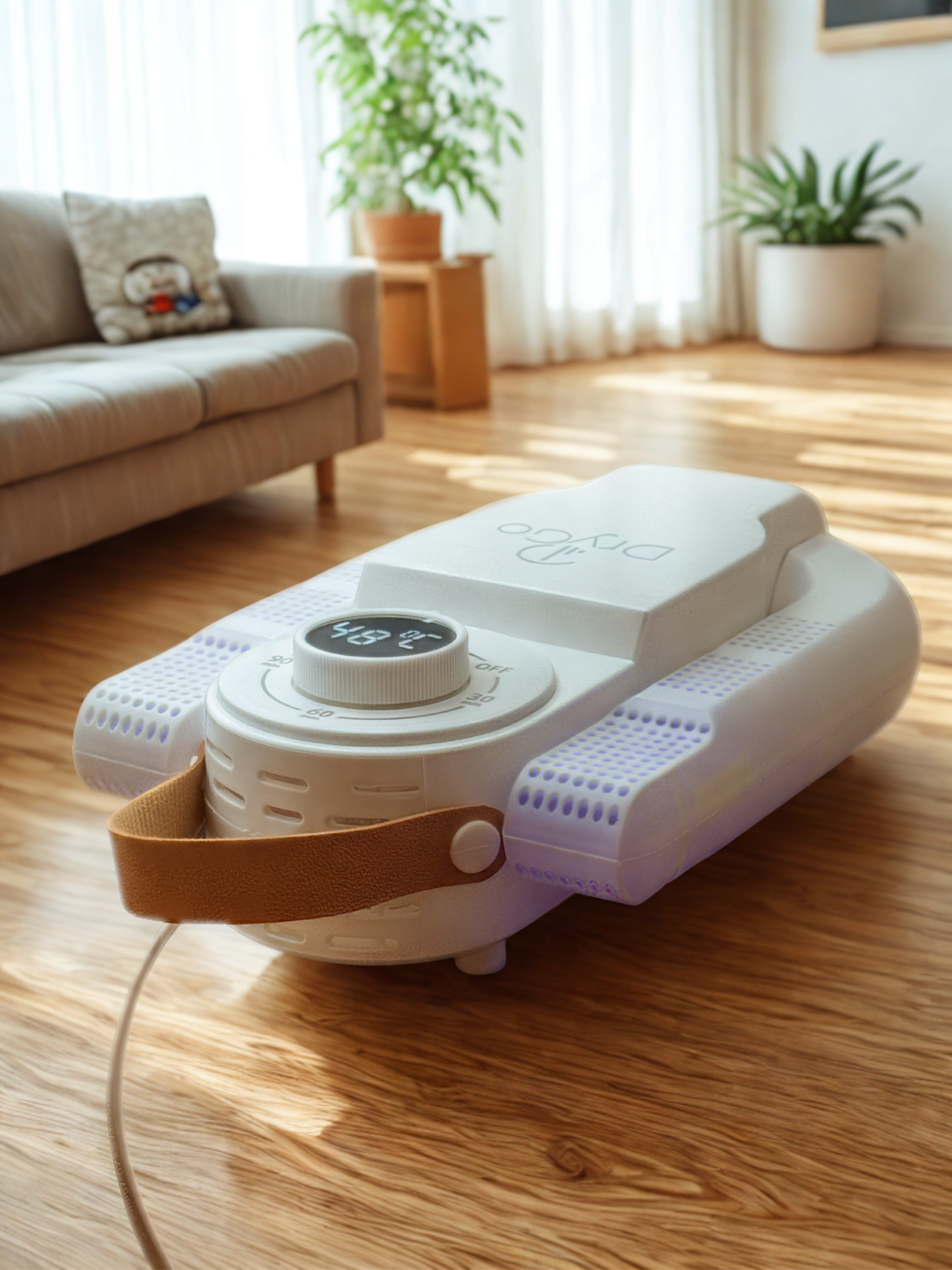 A Drygo a hagyományos szárítás helyett modern technológiát használ: UV-fénnyel elpusztítja a baktériumokat, miközben gyorsan és halkan szárít. Friss, száraz cipő – minden nap, gond nélkül. Ez a jövő a lábbelik tisztán tartásában.